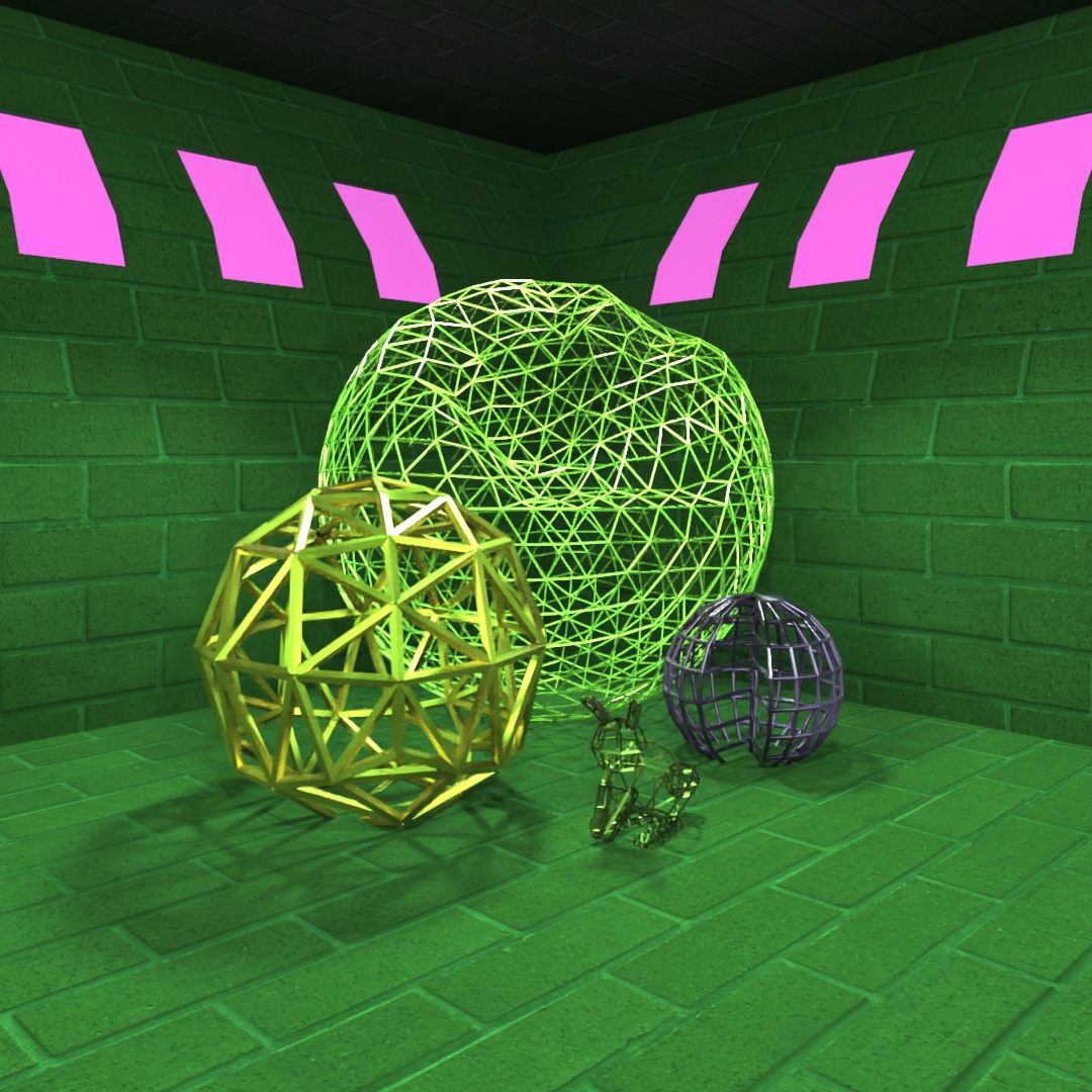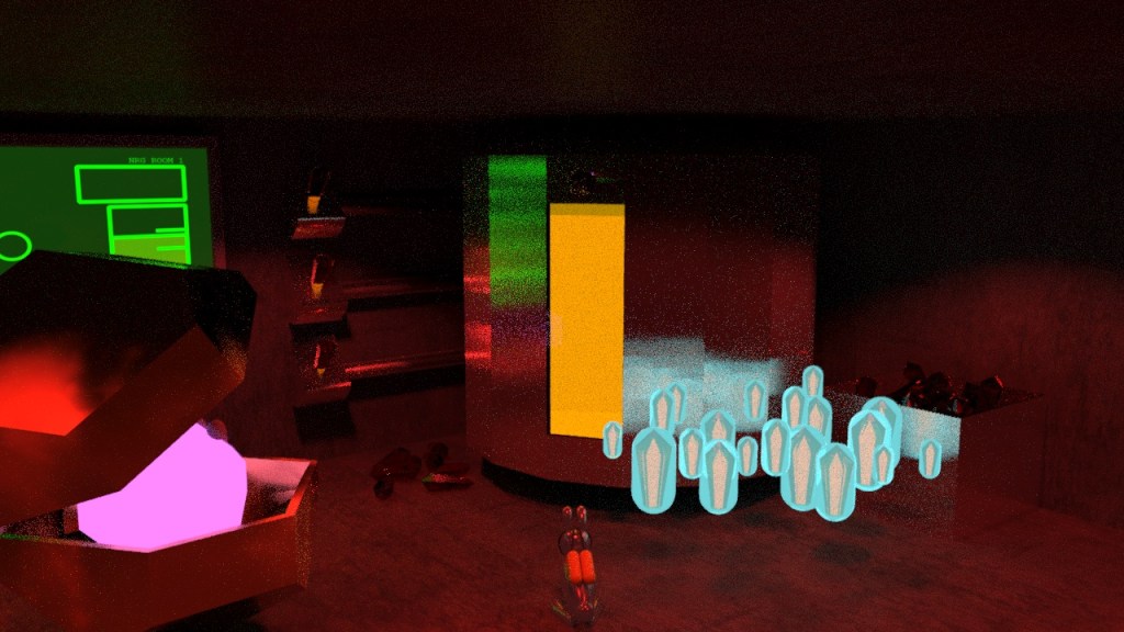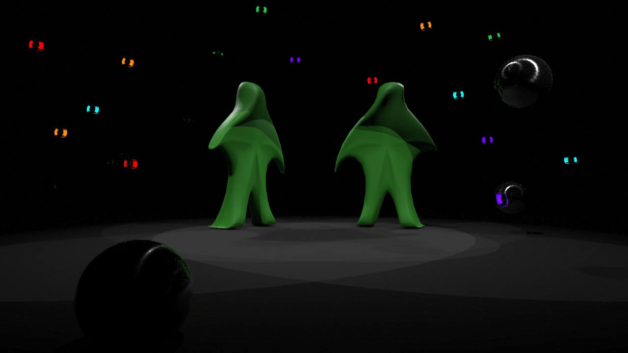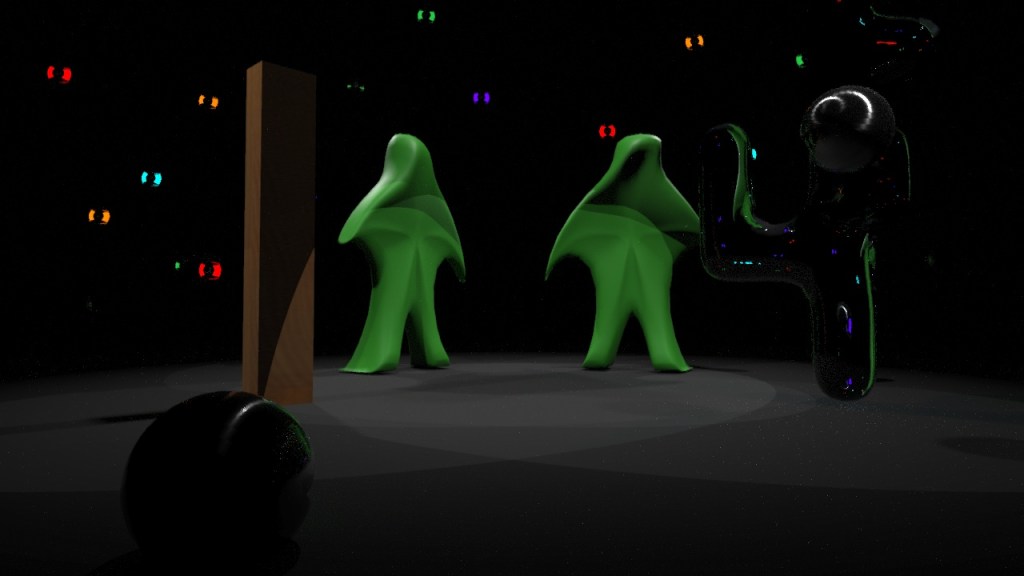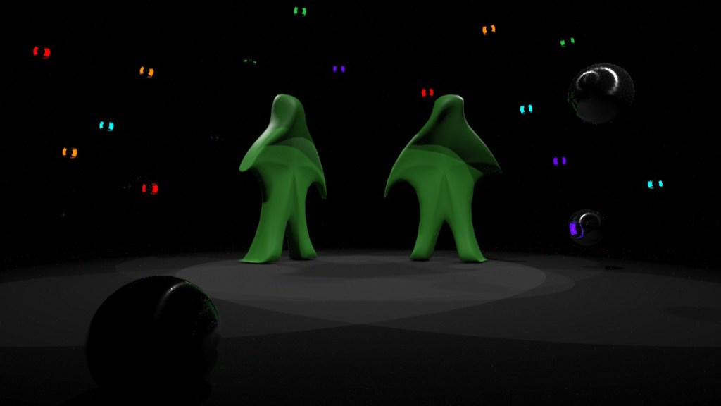 (MaxtoA Version 5.0.2.42 bug-fixed the optix de-noiser *woo!* so here’s a ton of reflective, transparent surfaces with too many lights!