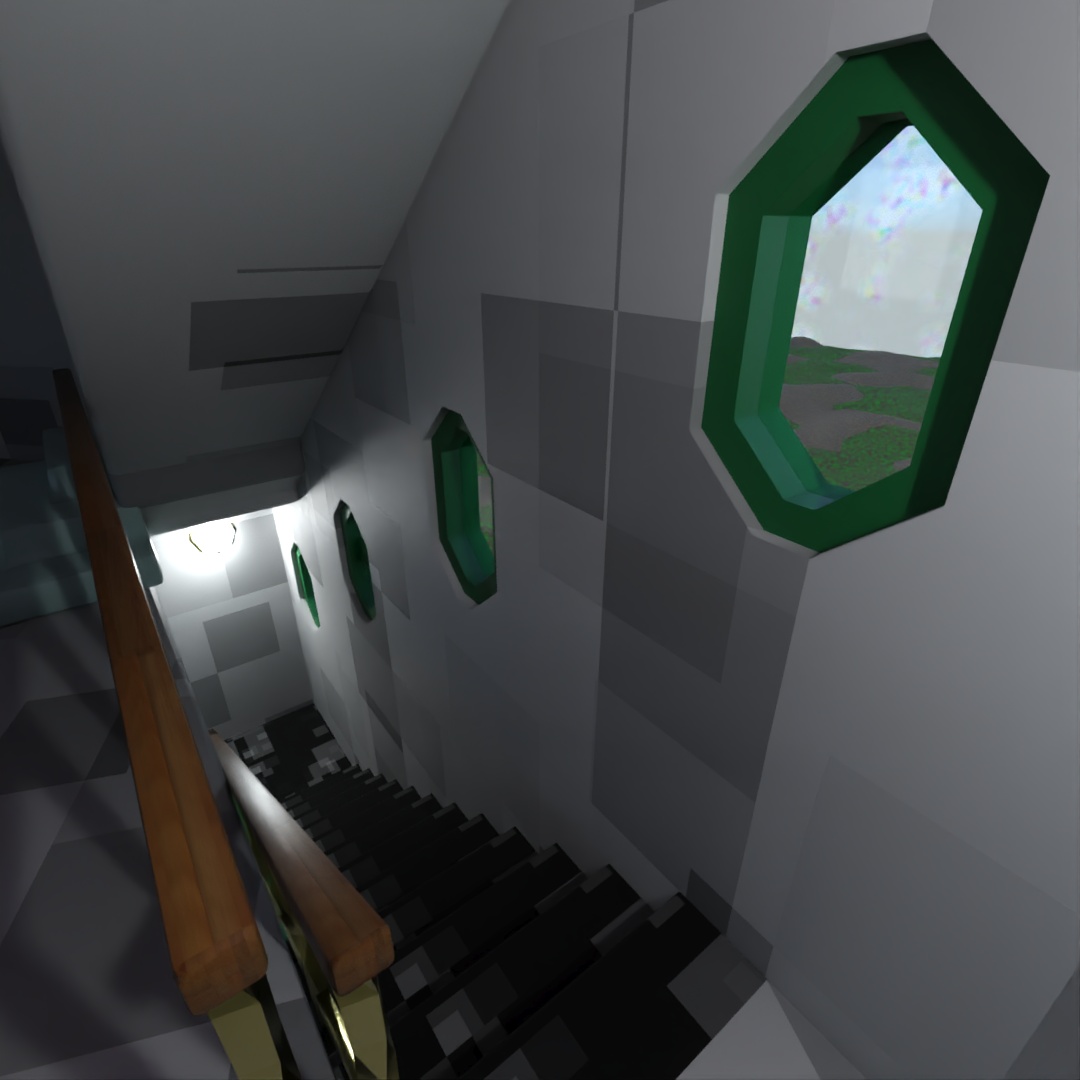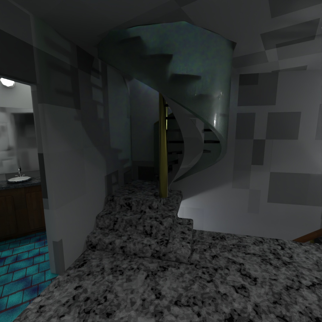 Level 3 hallway, spiral stairs, restroom