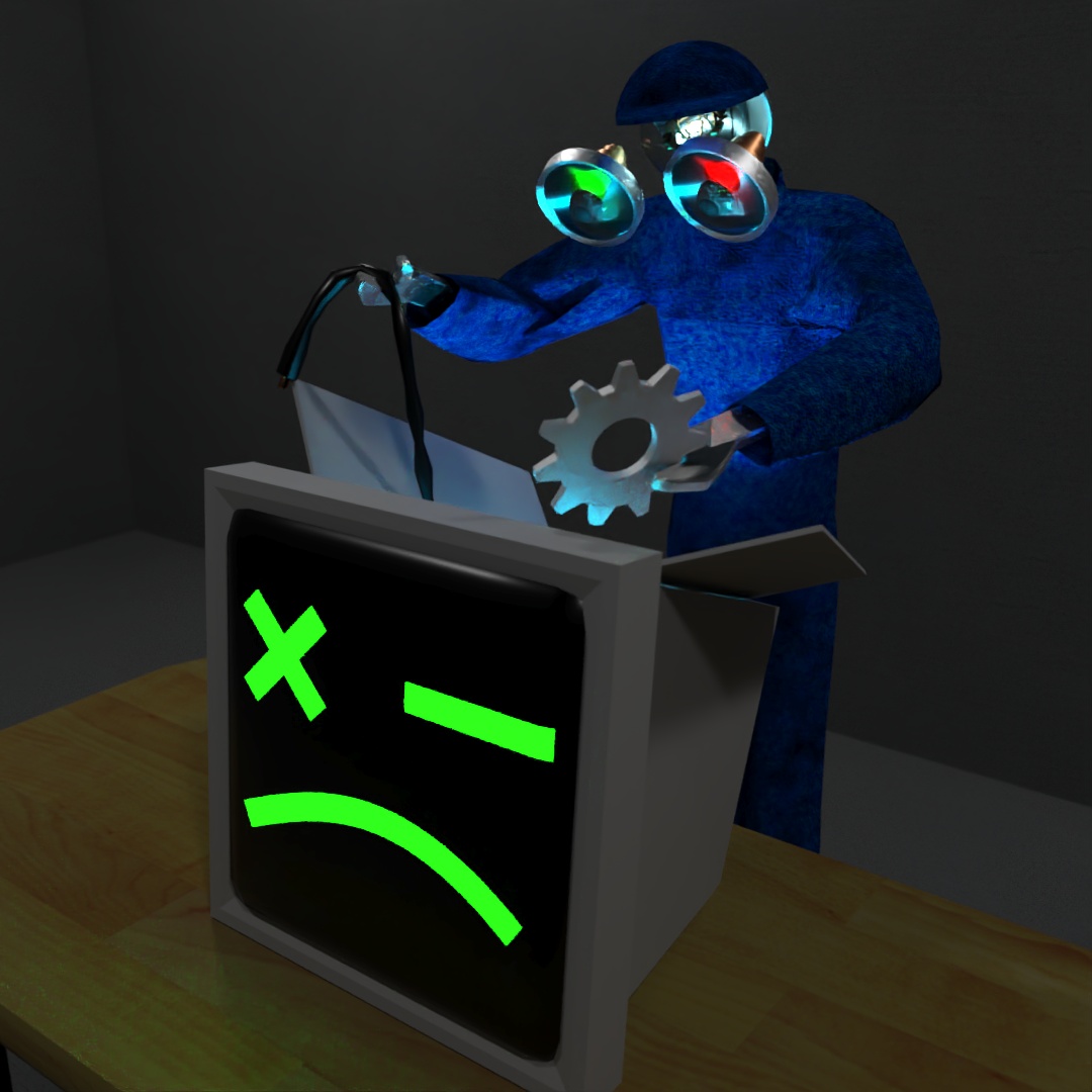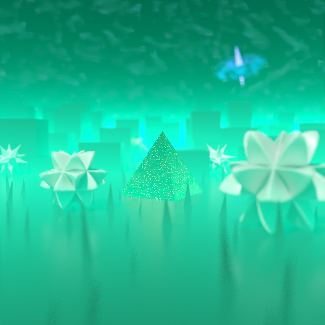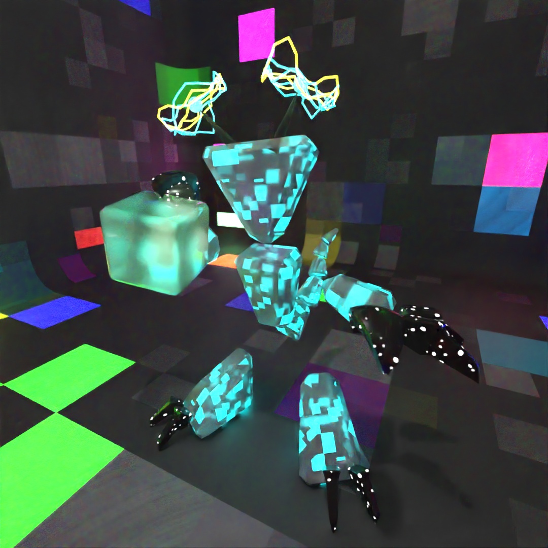 Tried to model some kind of small digital sprite fairy being with large hands and feet and antennas. Then just had fun with the transparency, color and emission of the materials. The wall/floor material is made by using a Noise3D map for the emission color and a Noise map for the emission value. This makes it only emit light in squares that have color and the black squares stay dark.