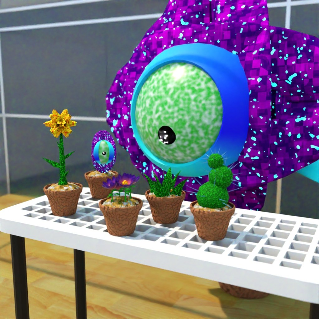 I wanted to try and model some low-poly plants to put into the rooftop greenhouse of the octagonal house I’m concept modeling. Then I added my eye-plants for fun.