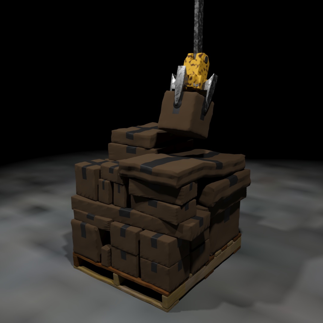 I was helping my parents unload a pallet of mulch in the yard and it made me think of the various different jobs I’ve worked involving pallets. Loading yogurt on and off of pallets in a refrigerated warehouse; unloading pallets of produce and merchandise from a semi-trailer to be broken down and shelf-stocked; catching packages from a conveyor belt and stacking them on the proper delivery pallet. Nearly every industry encounters pallets at some point in production. Because of how pervasive they are, pallets are subject to many standardizations and regulations. I modeled this pallet to specifications of the 48×40 North American pallet. Then I tried to model the way people ACTUALLY stack boxes on pallets, instead of the way they probably SHOULD stack them.