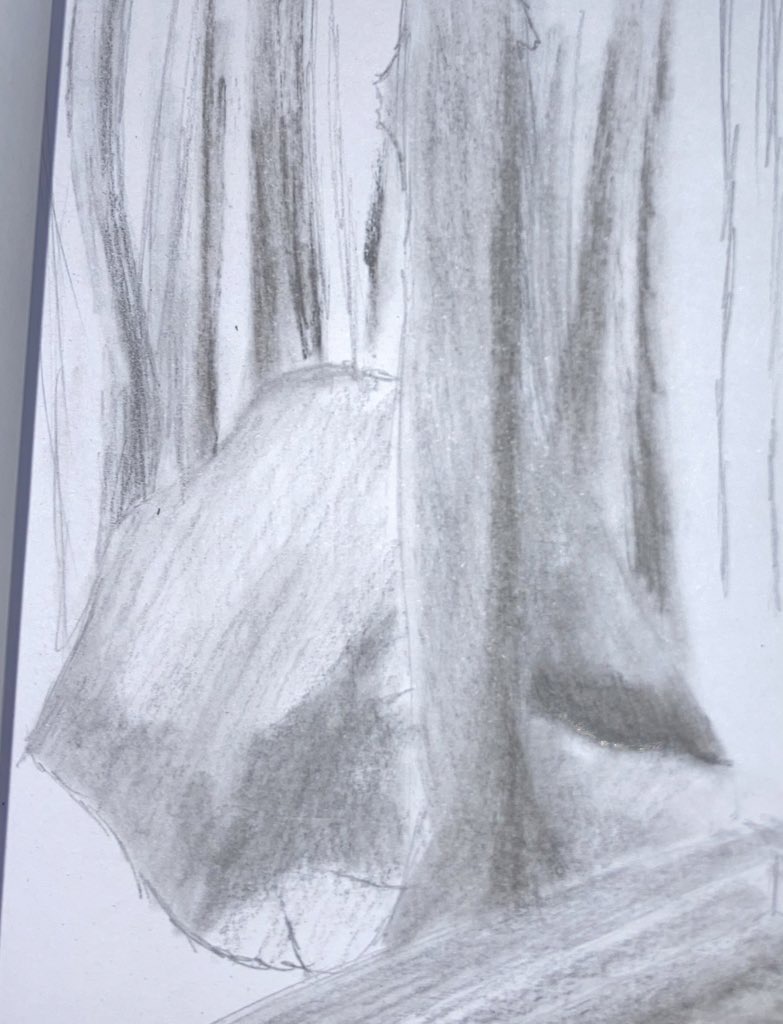 Was on a camping trip with no computer so I broke out the sketchbook and some graphite and charcoal and sketched one of the larger boulders next to our campsite. Just a friendly reminder that I need to work on my sketching skills haha!