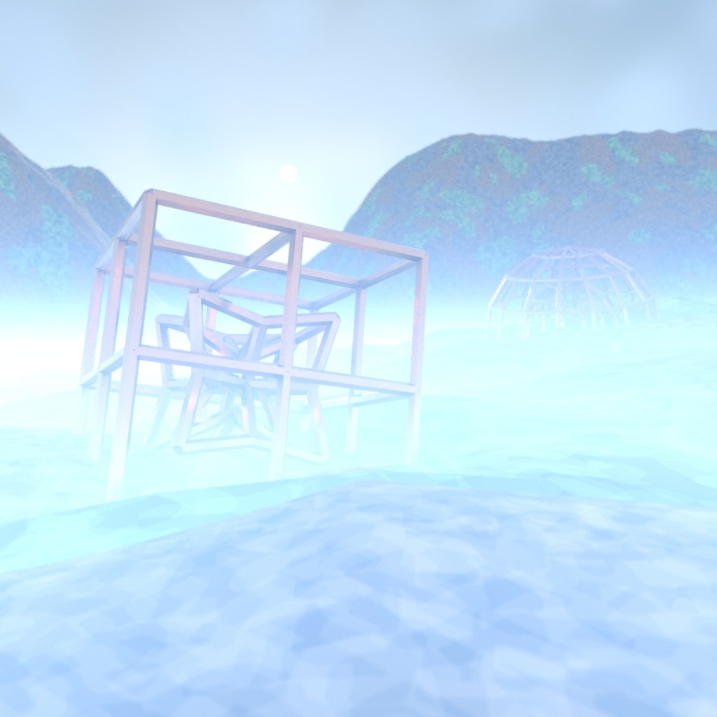 I was leaving for a camping trip this day so I woke up really early to quickly make this before we left. Just a version of the previous days’ creation, except using a glass cube instead of a sphere and the planes don’t have any turbosmooth modifiers.