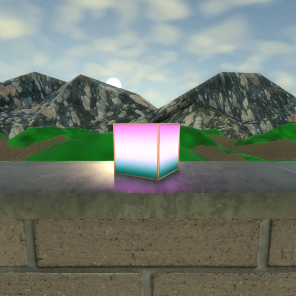 The primary purpose of this was to play around with the settings of the Gradient material map. I also applied a UVW Map to the glowing box to orient the gradient in a vertical direction. UVW Map was also necessary to make the concrete and brick look like the correct scale.