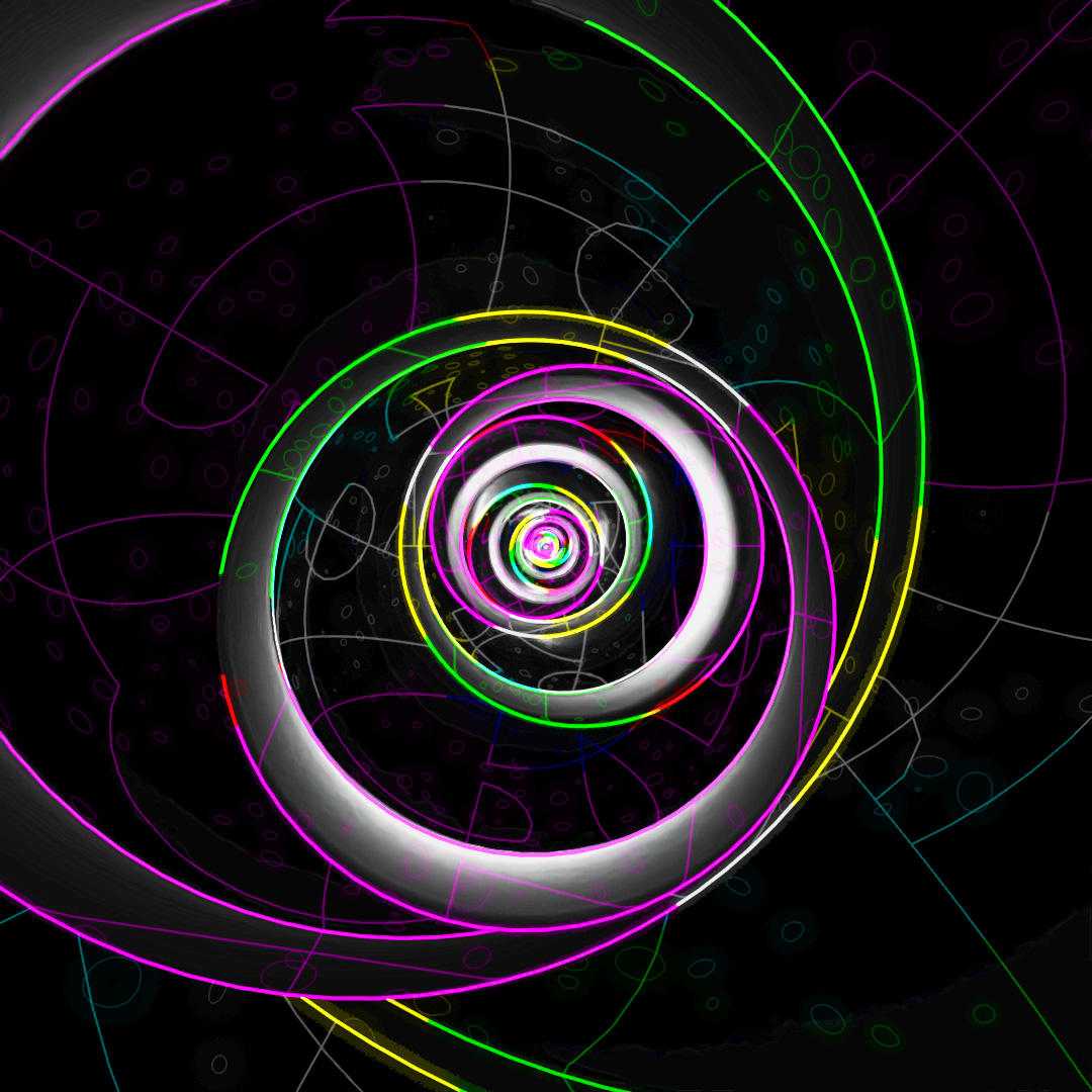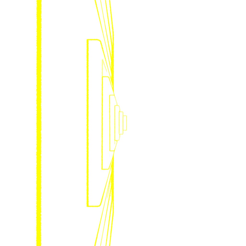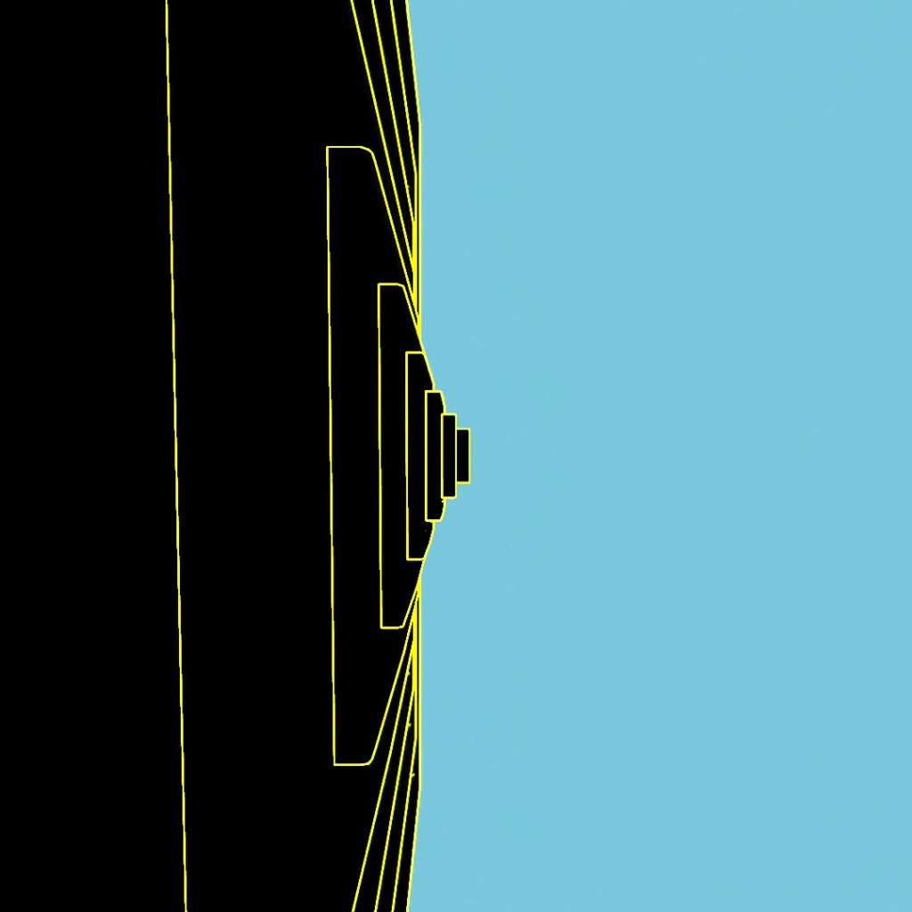 Started off with a box, used a shell modifier, slice modifier and chamfer to make an open-box shape. Then used Array to create a nesting-doll situation with boxes being scaled up and slightly shifted to the right. Rendered a few different versions of materials, starting with a glossy black glass material and a light in the center, then using toon-shader to give it the glowing lines and then layered them all together in photoshop.