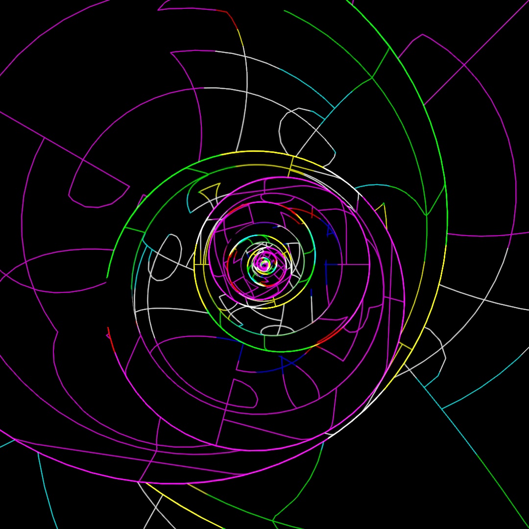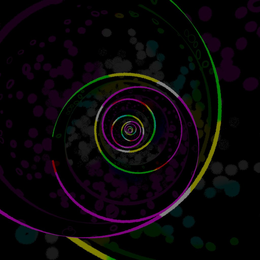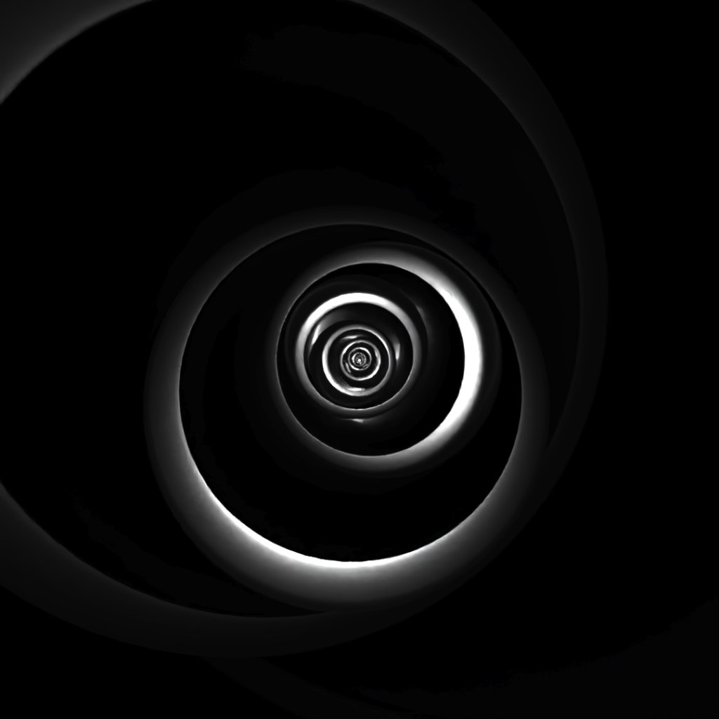 Started off with a box, used a shell modifier, slice modifier and chamfer to make an open-box shape. Then used Array to create a nesting-doll situation with boxes being scaled up and slightly shifted to the right. Rendered a few different versions of materials, starting with a glossy black glass material and a light in the center, then using toon-shader to give it the glowing lines and then layered them all together in photoshop.