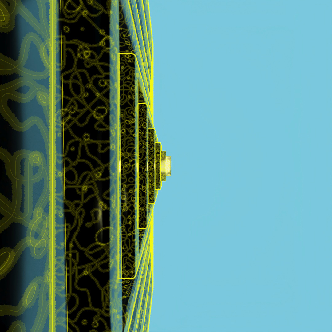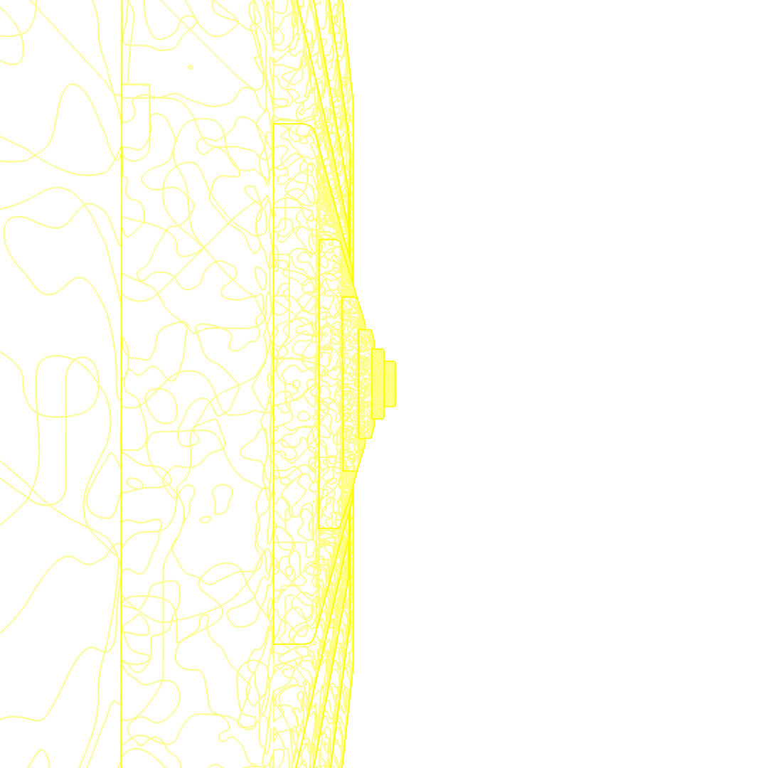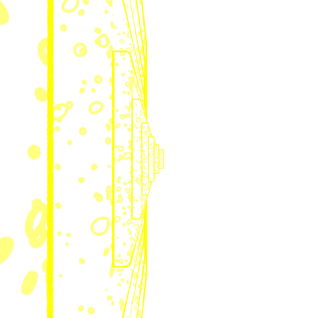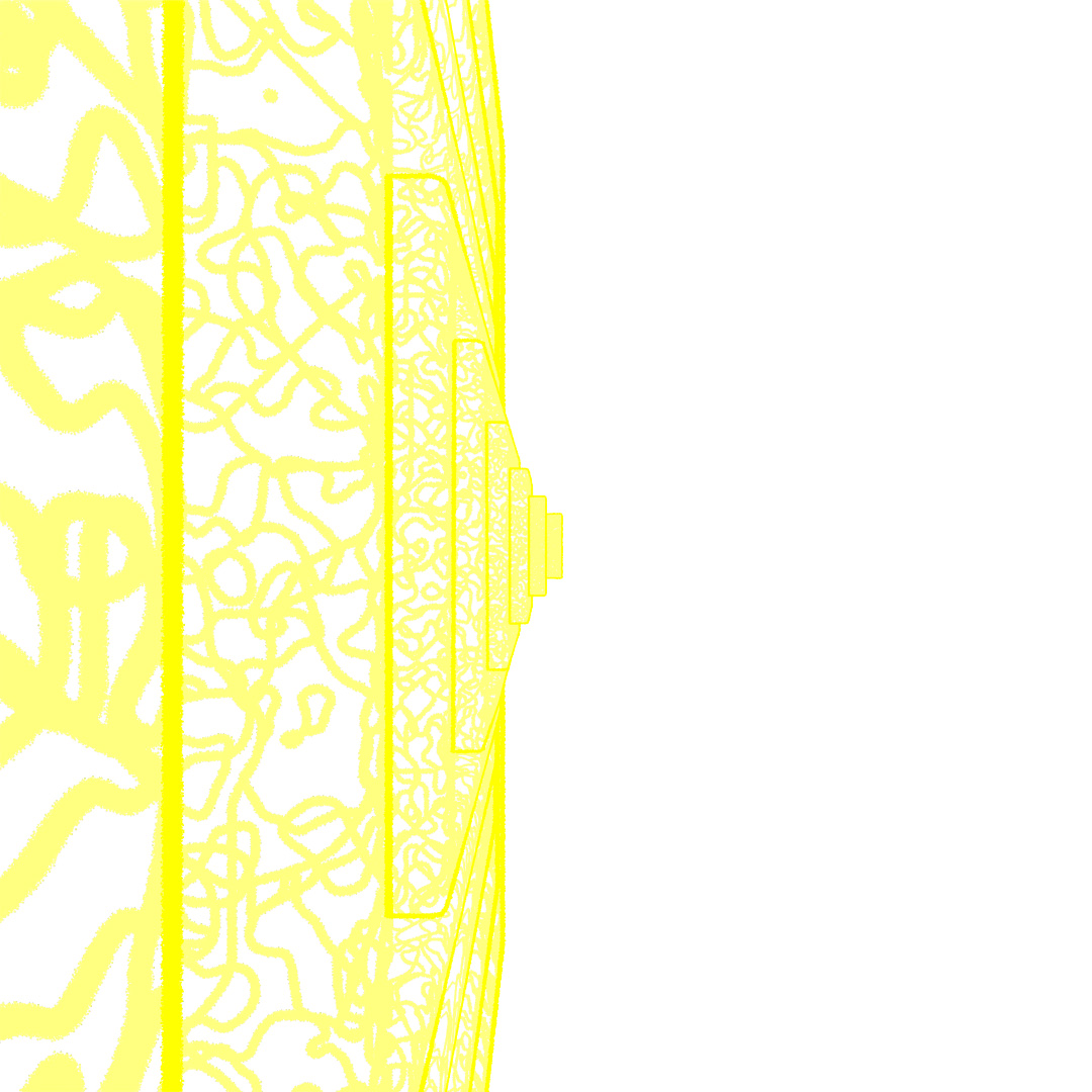 Started off with a tall skinny black glossy plastic box and used Scatter to distribute copies across the surface of a curved plane. Used the parameters to randomly vary the z-position, add up to a 2° rotation and 5% chaos to the vertices of the copies. In the middle I added a large transparent sphere, a medium sized transparent sphere with a noise map of orange emission and then a small sphere of emissive yellow. Then rendered different versions with Depth of Field on and varying apertures and also Toon Shader versions and layered them all together.