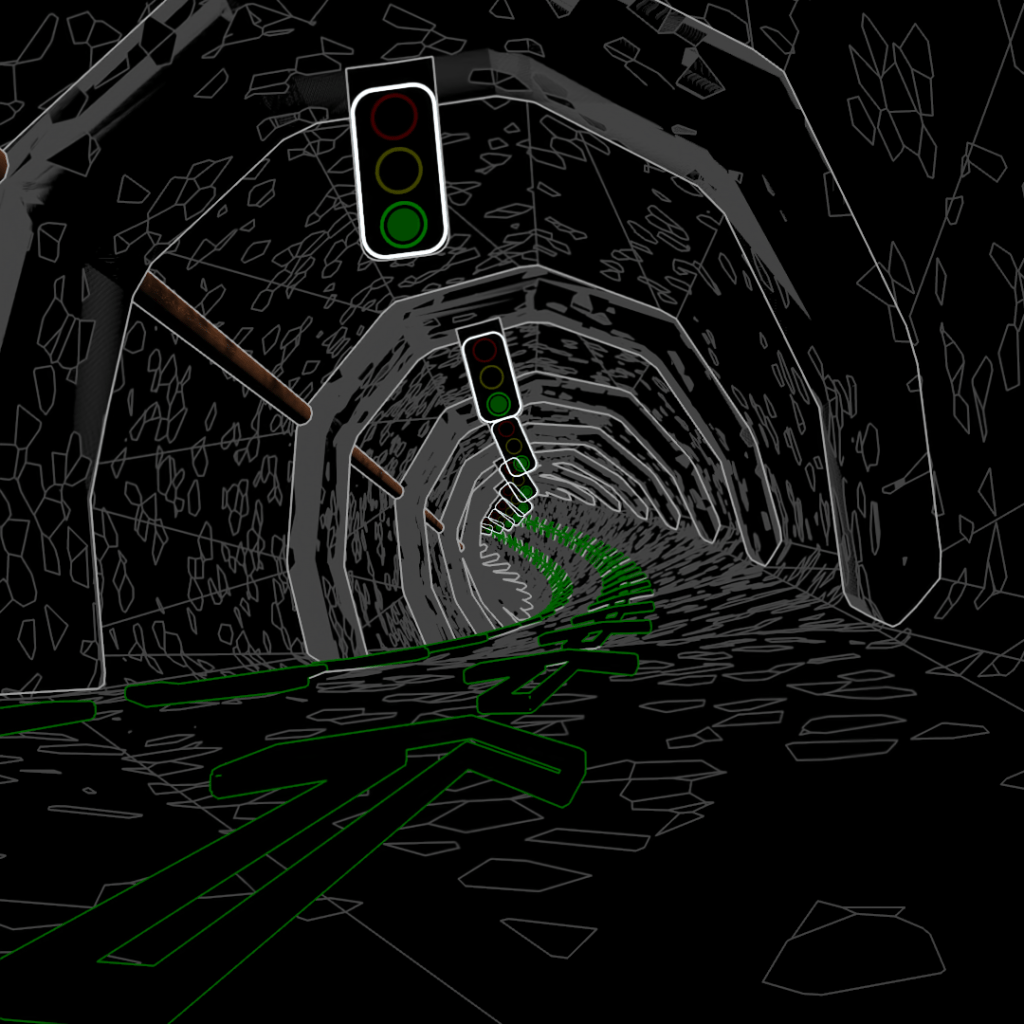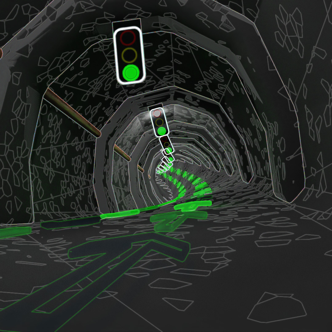 This video is made of only 6 frames. The green lights go off and on every other frame and the arrows cycle in a 3-frame loop. Then I layered on Toon Shader overlays at intervals of 6, 12 and 18 frames.