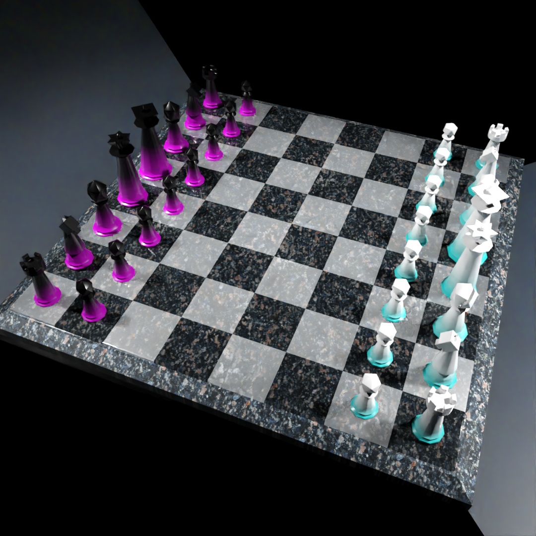 After listening to Lex Fridman’s podcasts with Magnus Calsen and The Botez Sisters, I got inspired to model a chess set according to the FIDE handbook equipment standards. Used the gradient map again for the materials of the pieces.