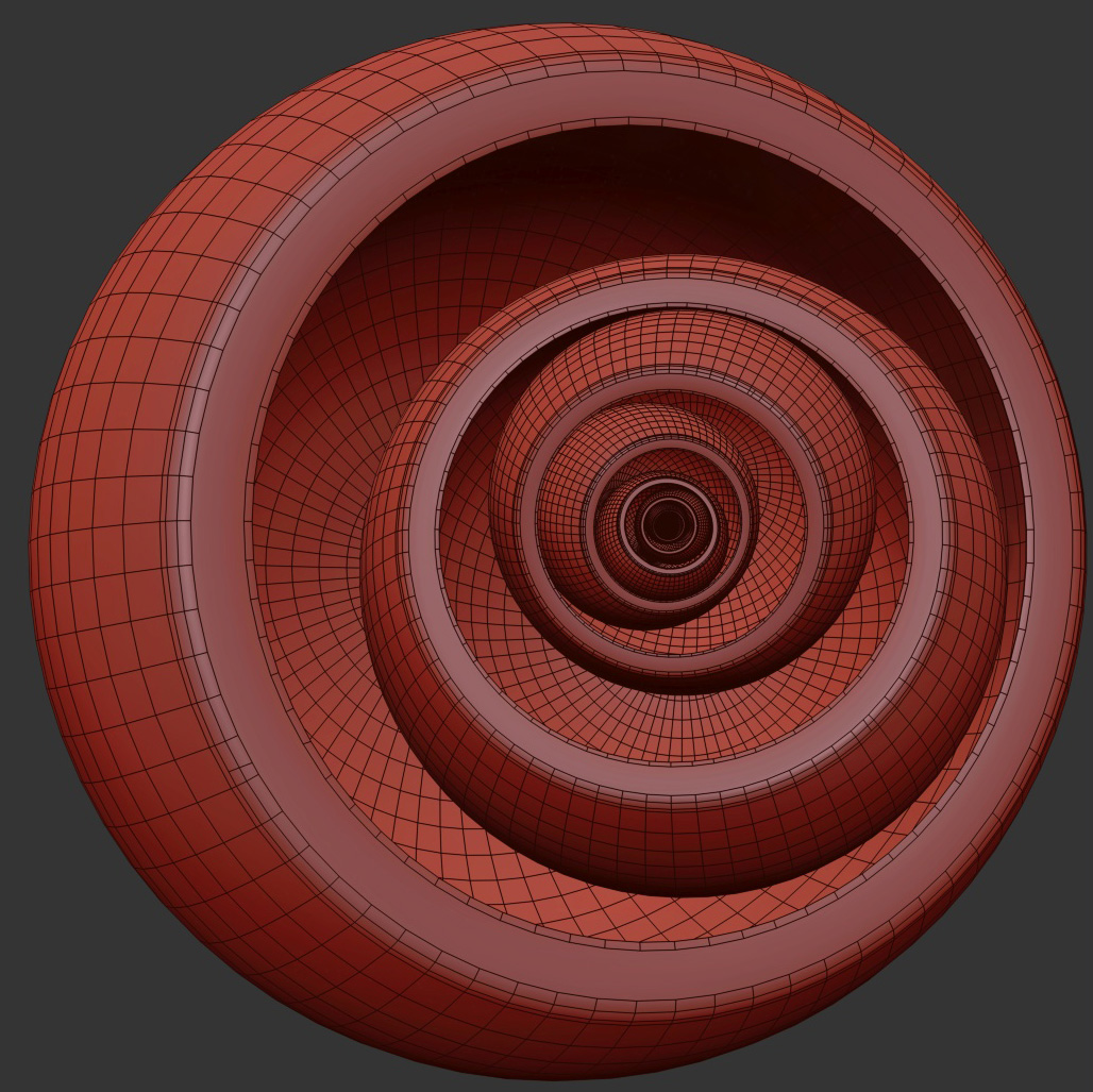 I’m taking a 3D printing class this semester and was trying to think of something fractal-like to print. This was just a fast attempt to model a sphere-based fractal. Each sphere has 0.5 for Hemisphere and is sliced from 270° to 360°. I slightly overlapped the different sections and used Boolean to union them into one shape. I actually ended up printing an altered version of this at the end of the week.