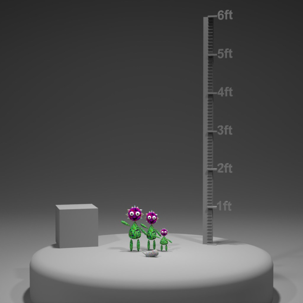 At this point, I believe I’ve got all the characters for TPS2 made, so I wanted to put them all into a similar setting to compare their sizes.