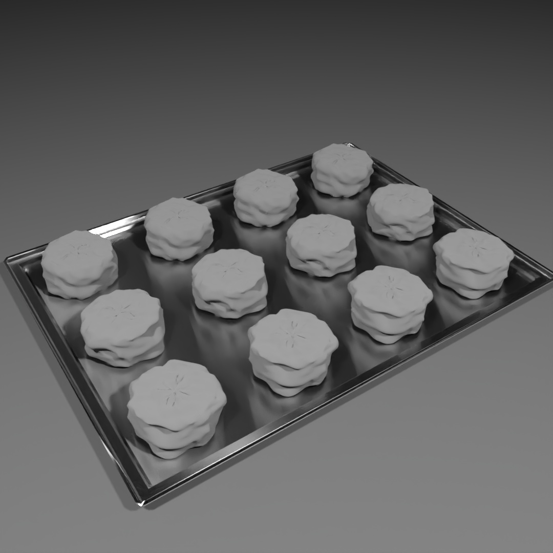 Biscuit porcelain is white porcelain that is intentionally left unglazed in final production, giving it a more matte appearance. Each biscuit is a Chamfer Cylinder with a Noise modifier only applied in the X and Y directions.