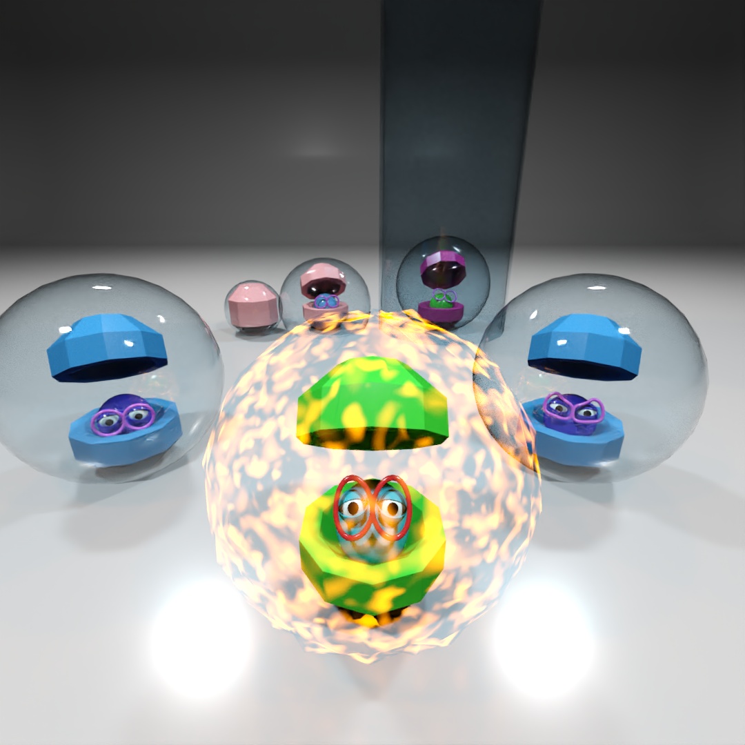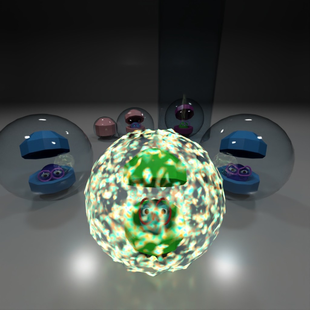 While listening to Ryan Graves on Joe Rogan’s podcast, I wanted to model one of the descriptions of one of the UAP’s (a black cube inside of a sphere) but honestly it was boring looking alone, so I also added some other funky shapes too. The bubble-looking object is a box with the Spherify modifier.