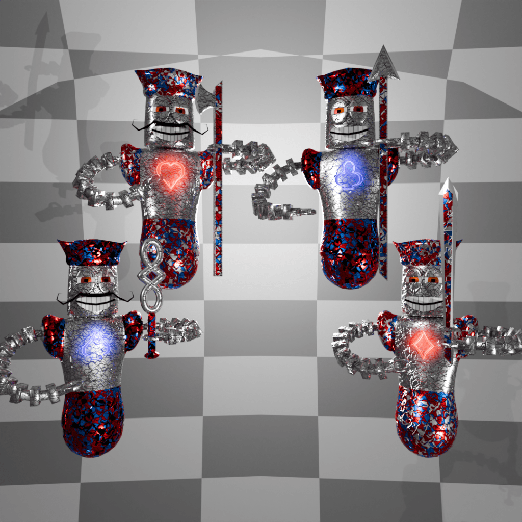 In January, I continued modeling scenes and characters from Alice’s Adventures in Wonderland, including the Cheshire Cat, the March Hare (and his house), the Mad Hatter, the Sleepy Dormouse and many of the members of the Royal Family. Then I got a little distracted at the end of the month. lol