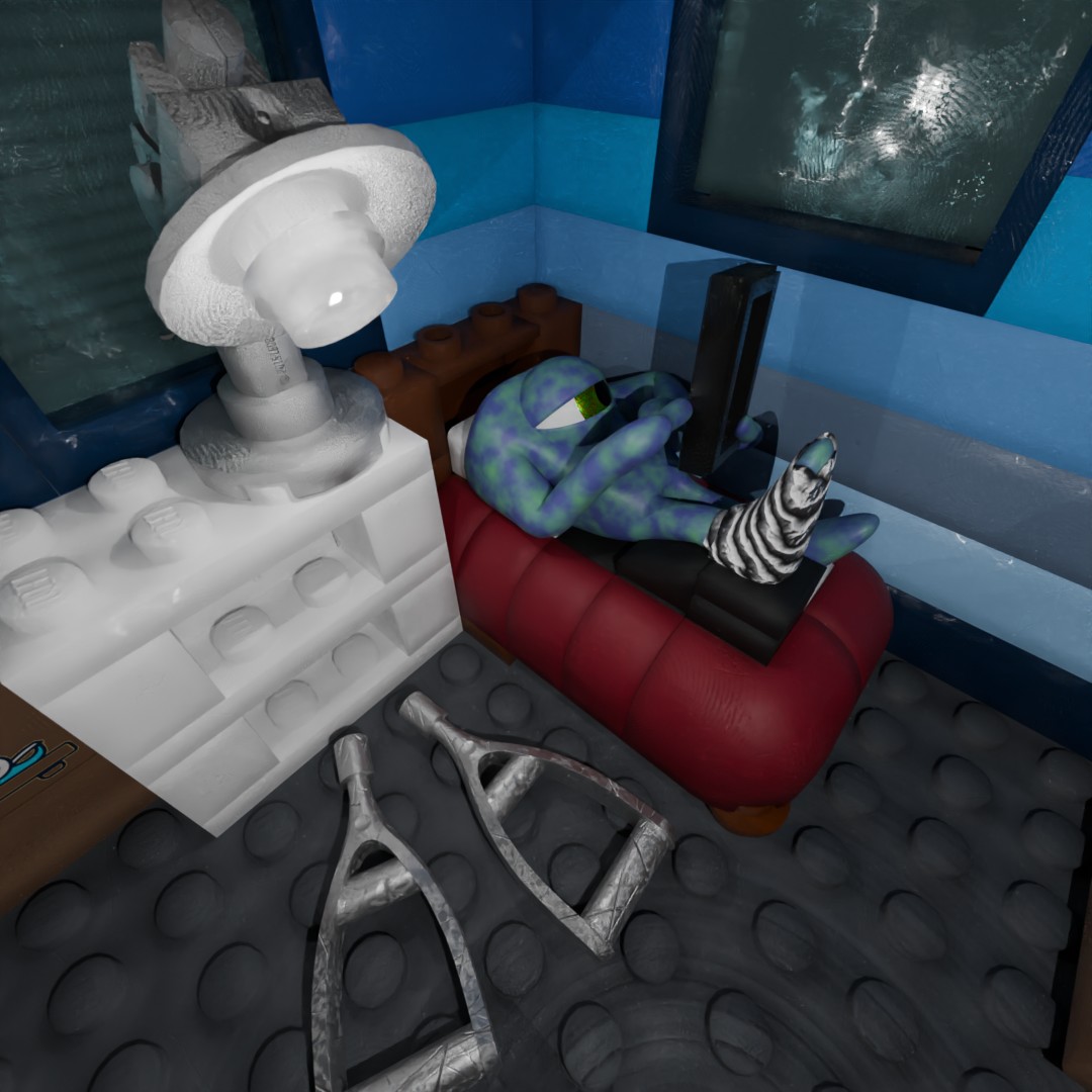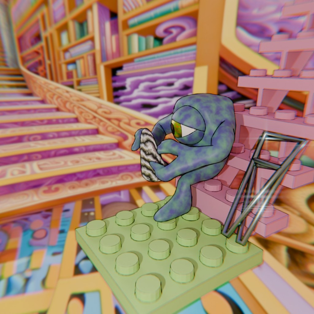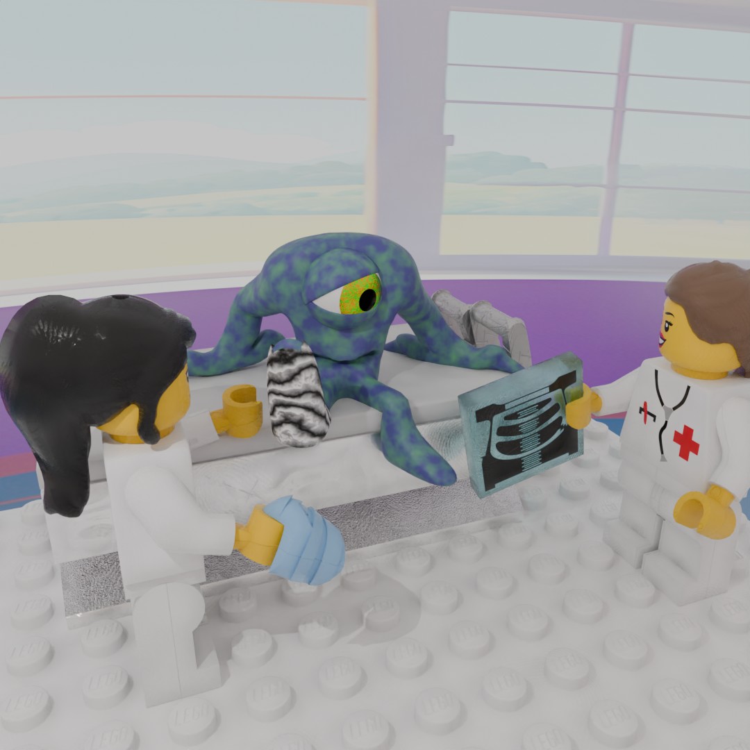 I started out May by continuing to create scenes with my Robotic Bees. I made a few Lego Star Wars posts using Mecabricks to build the robots and scenes. Then I broke my foot at work (!!!) so many of my scenes involved my various struggles and circumstances around my broken-ness situation. I decided to purchase the Mecabricks Advanced Blender add-on since I was exporting so many items, so most of the rest of the month I used Mecabricks to build and export Lego scenes to Blender and then added my characters to those scenes.