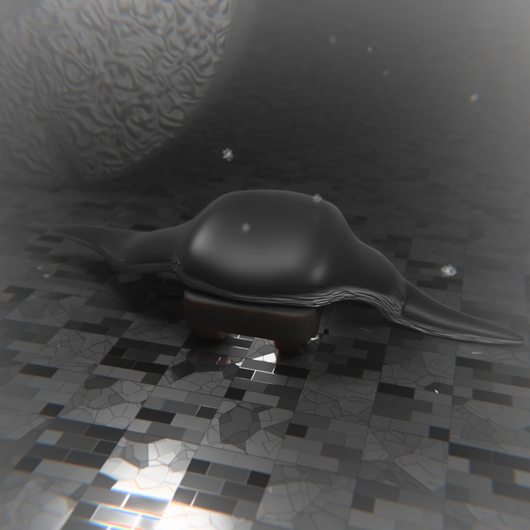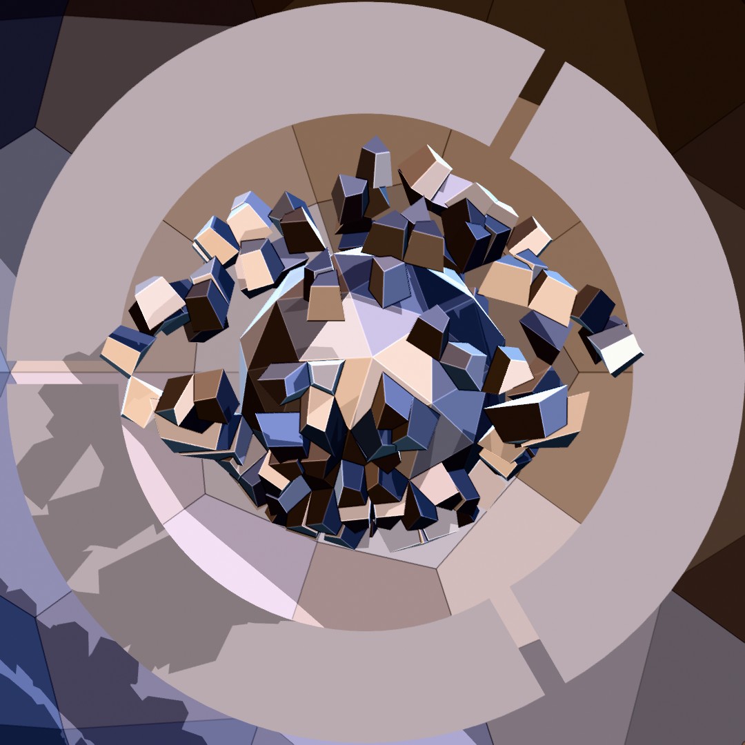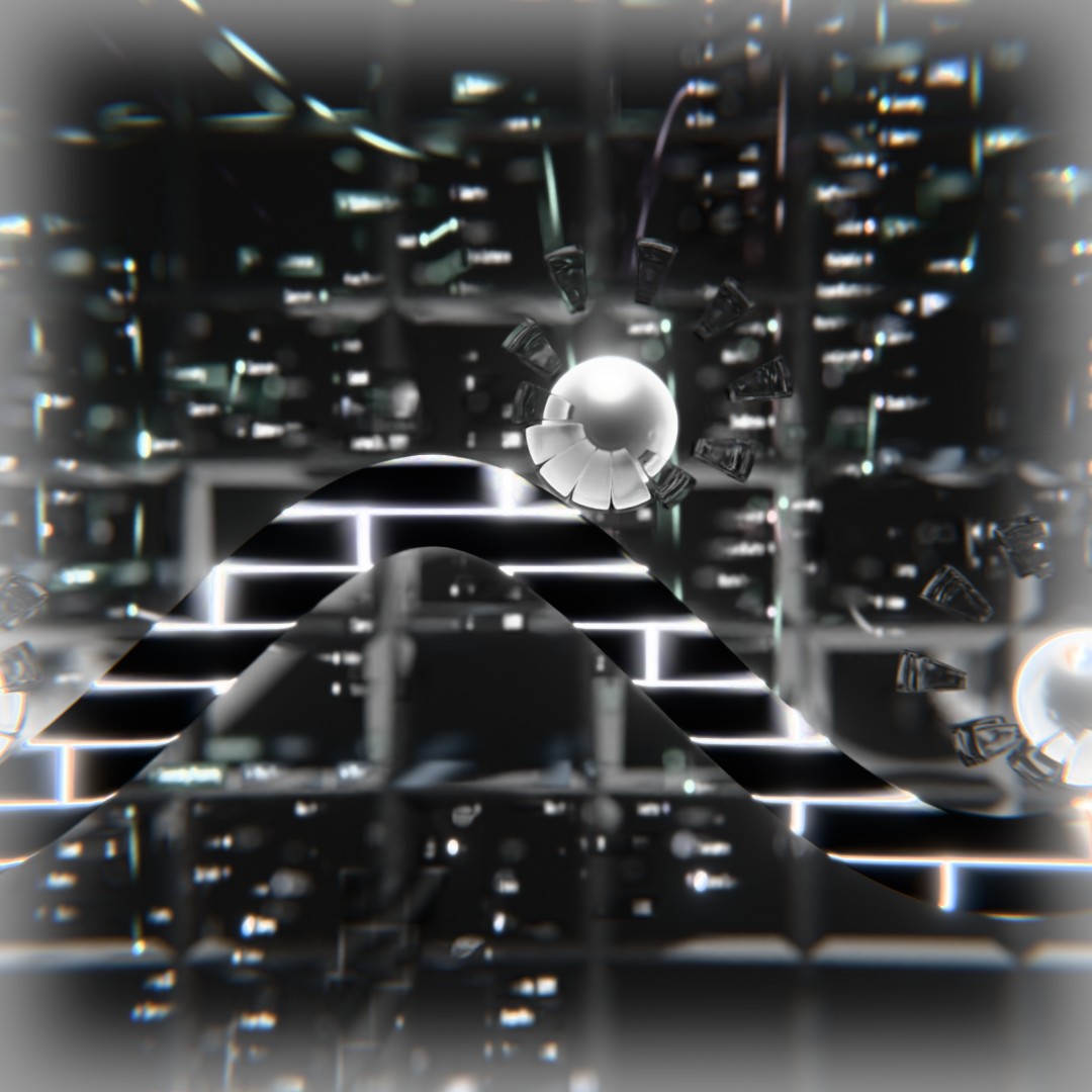 Each rolling fixture made with the same (messy) geometry nodes modifier (featured in the flooring image texture) with inputs for marble radius, shell thickness, number of shell segments, materials, and rotation (for animation).
