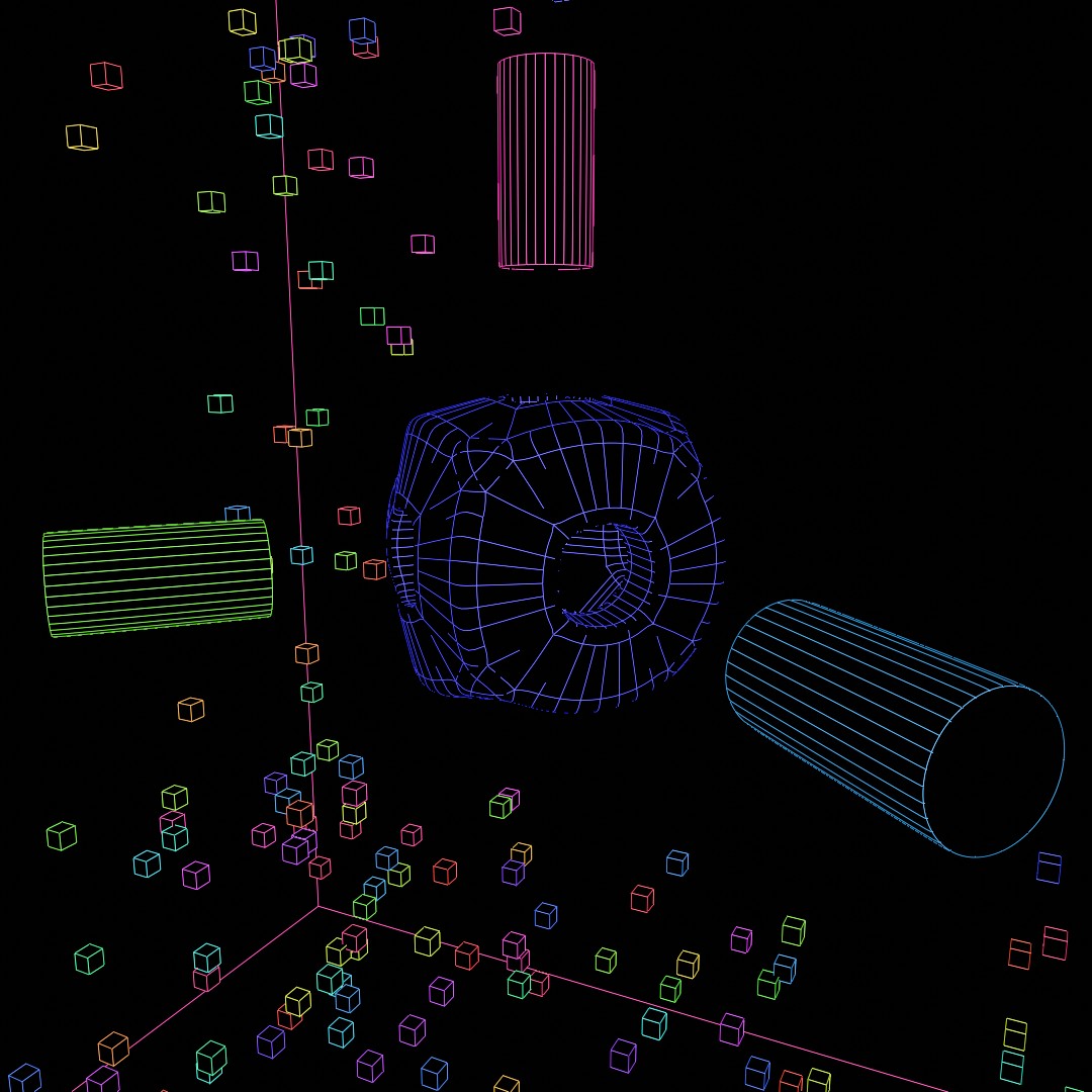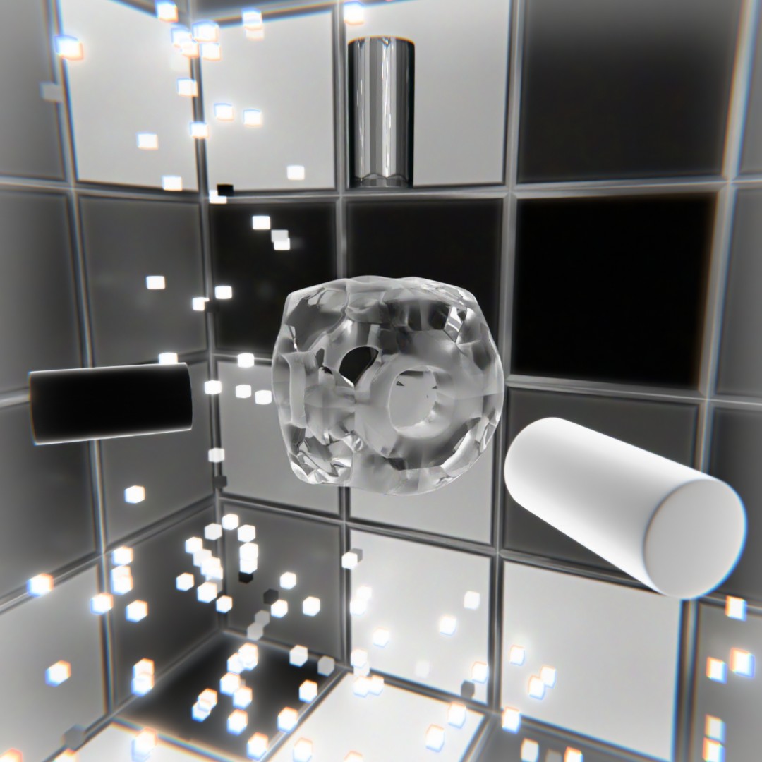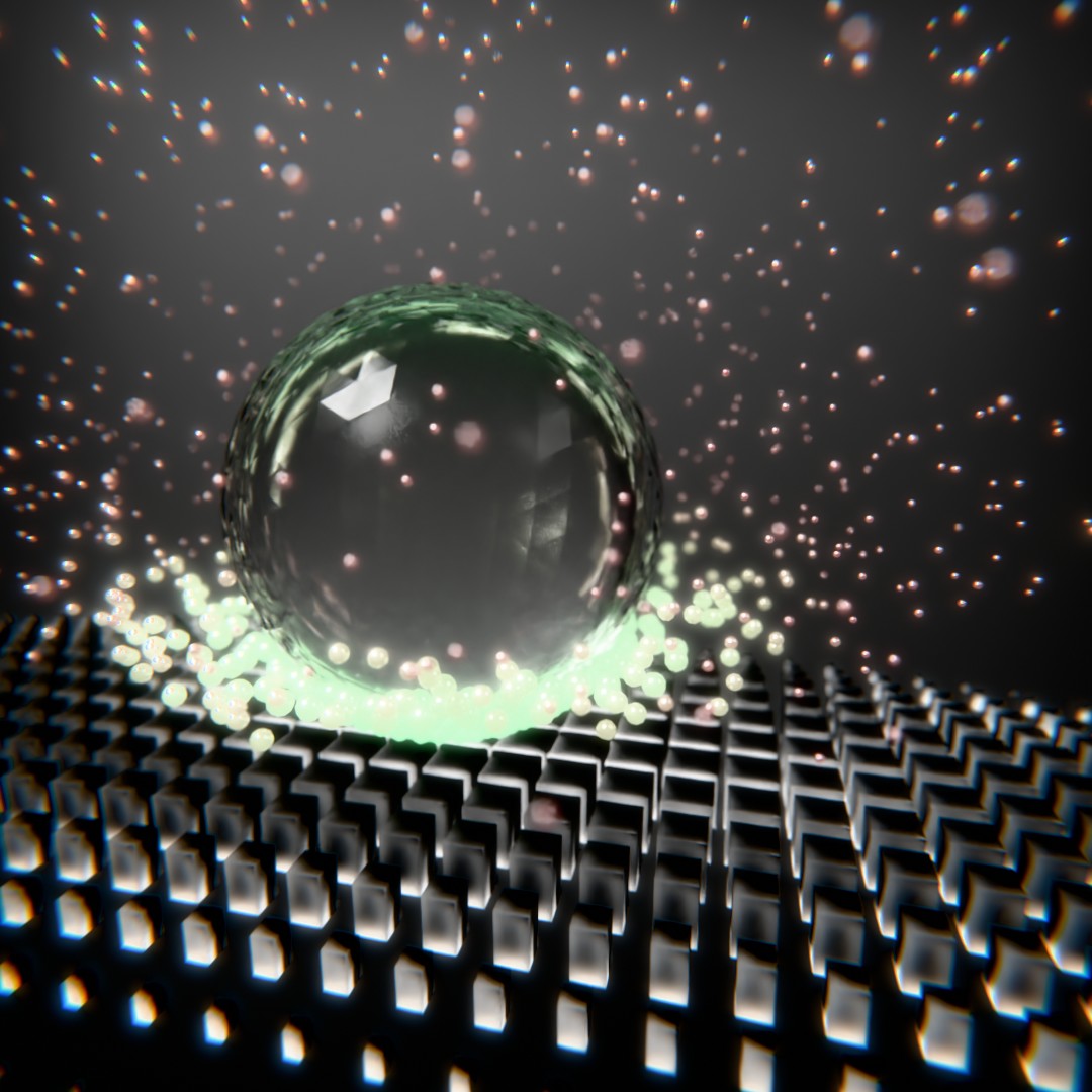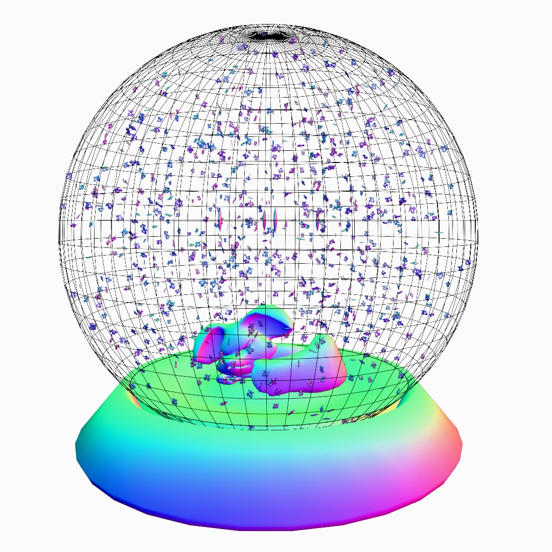 Each rolling fixture made with the same (messy) geometry nodes modifier (featured in the flooring image texture) with inputs for marble radius, shell thickness, number of shell segments, materials, and rotation (for animation).