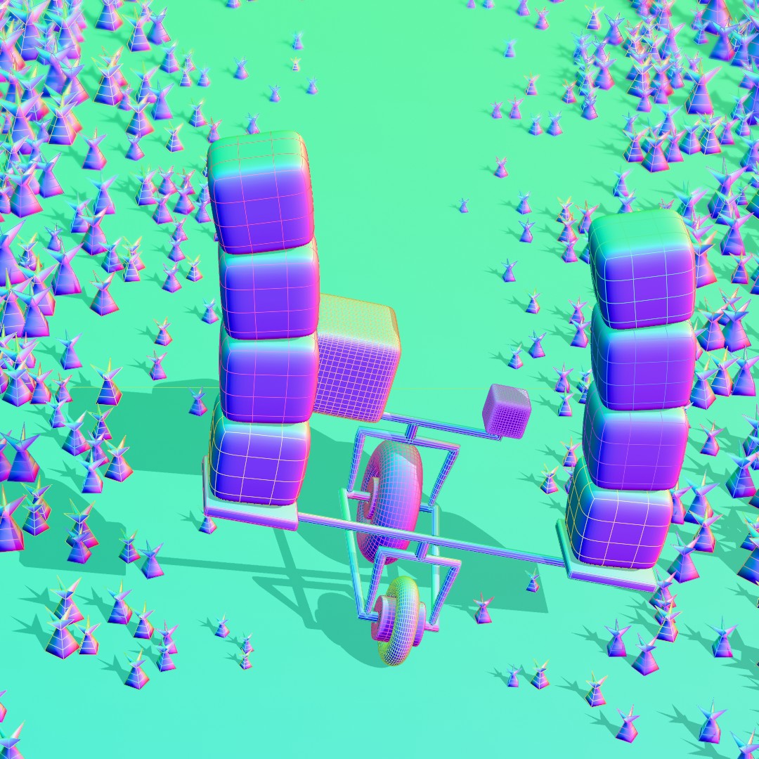 @bashi_a_valid_username liked my rolling animations and made their own awesome version, which re-inspired me to try a similar idea using an ico-sphere (stretched out) with extrusions!