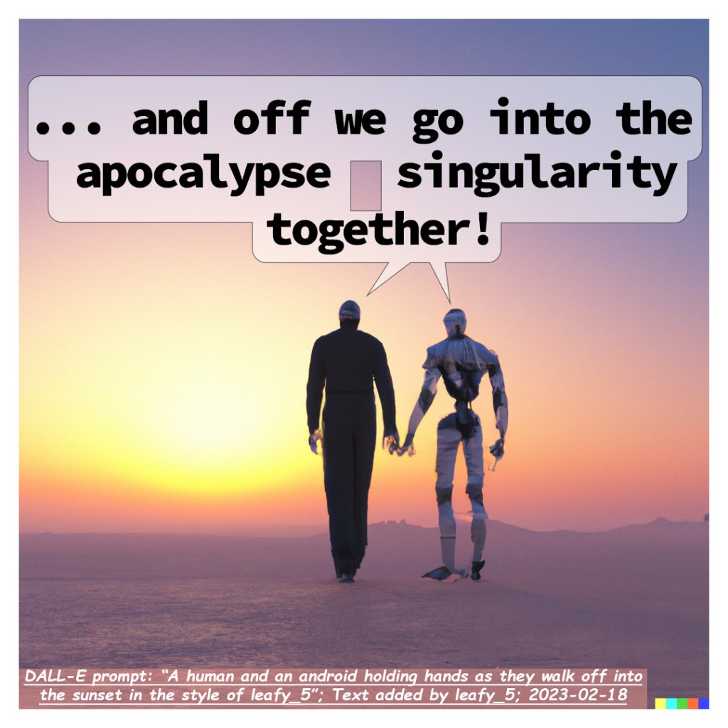 My first venture into working with an A.I. image generator (specifically, DALL-E 2) was to ask it to make it an image in the style of leafy_5 (me) and add my own text to it to make a web-comic. I had wanted to make this web-comic for a while and figured that using an A.I. as a creative partner would be a perfect way to make it.