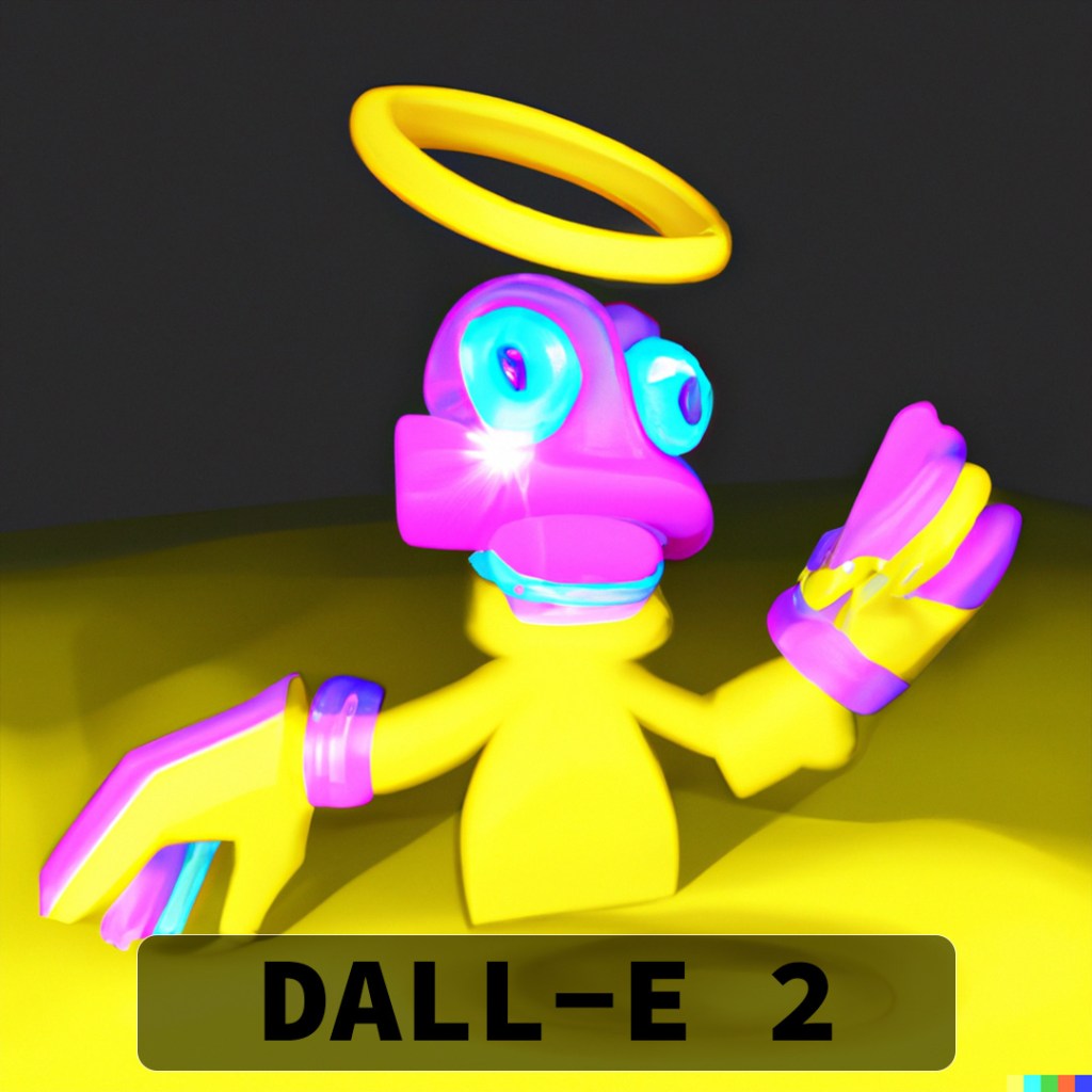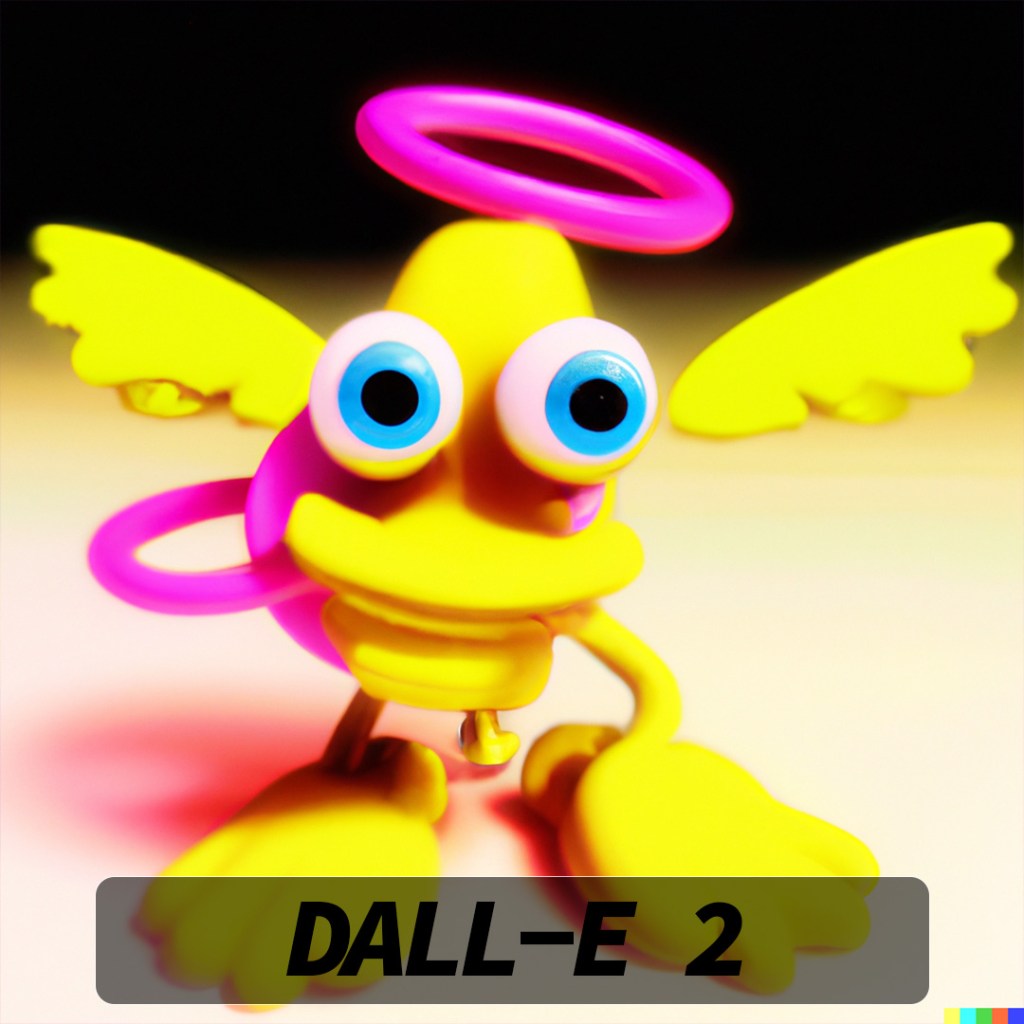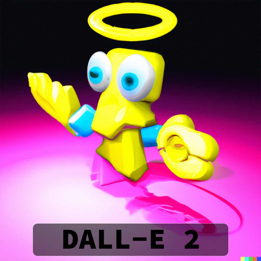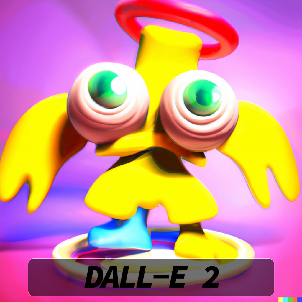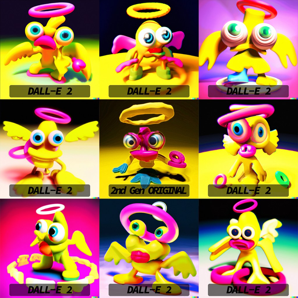 DALL-E 2 really hooked into the idea of a halo (I should have picked a slightly different angle to try and get the double-rings) and most of the variations also have the appearance of eyes. Some of them look angry and as if they are in attack stance and others look very derpy and comical.
