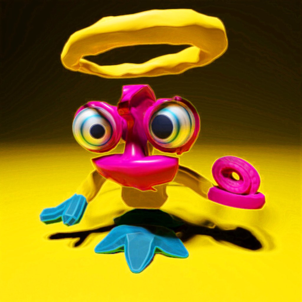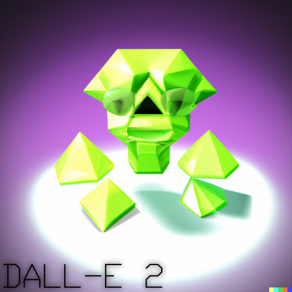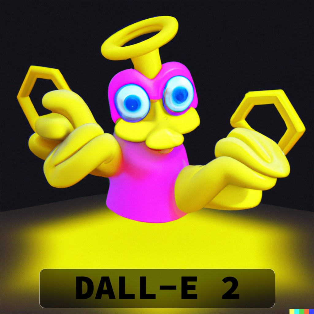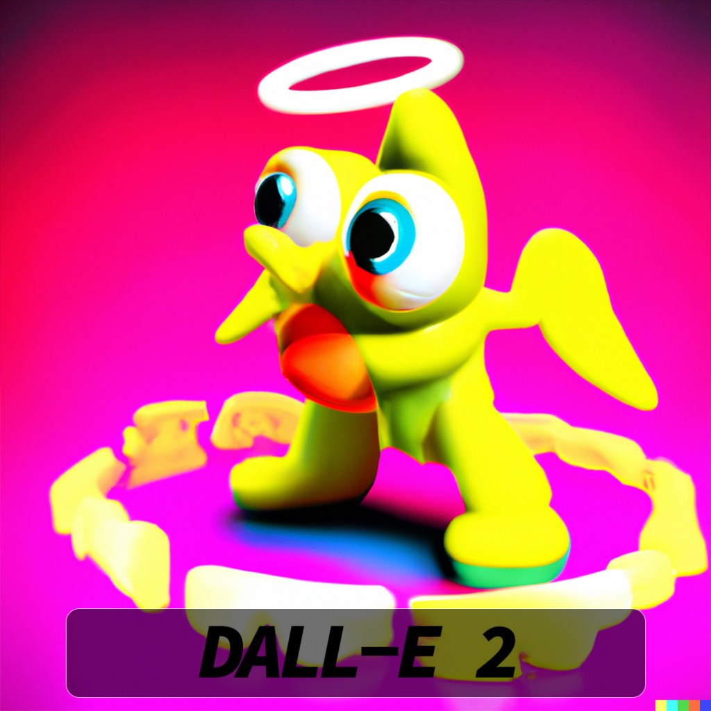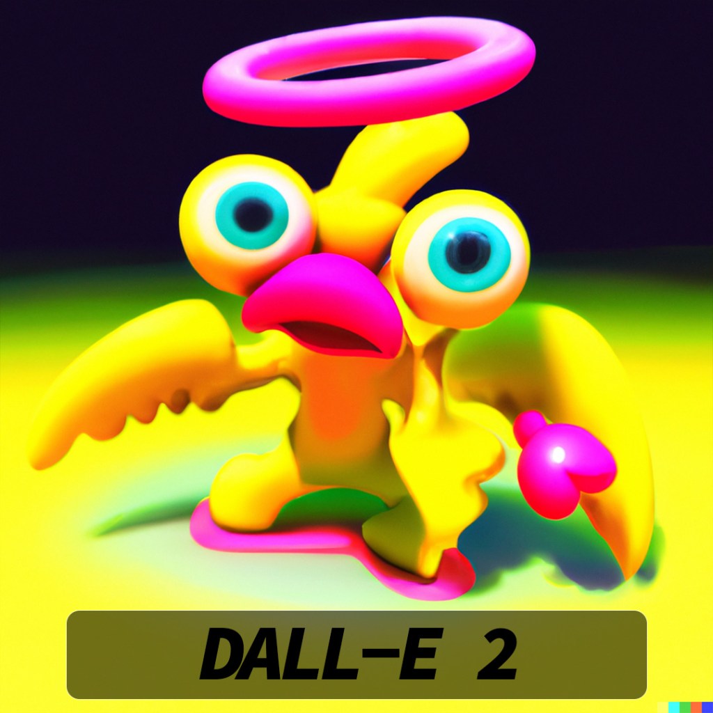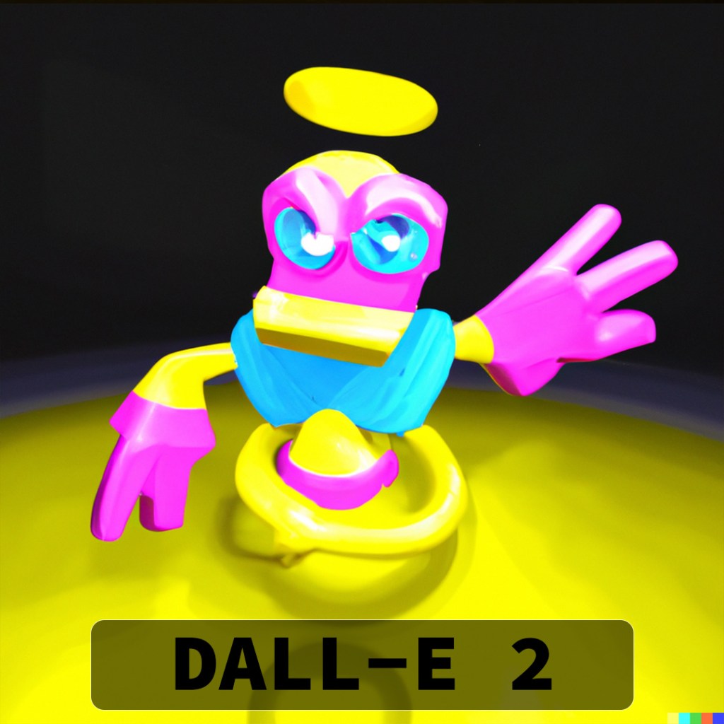DALL-E 2 really hooked into the idea of a halo (I should have picked a slightly different angle to try and get the double-rings) and most of the variations also have the appearance of eyes. Some of them look angry and as if they are in attack stance and others look very derpy and comical.