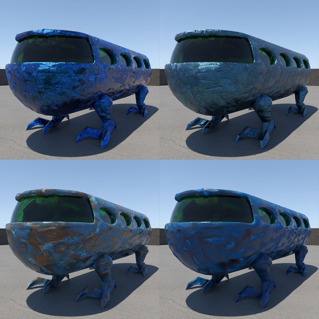Over in 3DSMax, I tried applying the materials to a few different shapes and even one of my concept vehicles to see how they came out in a render. Very impressive in my opinion, and greatly reducing the time consuming task of material creation for rendering.