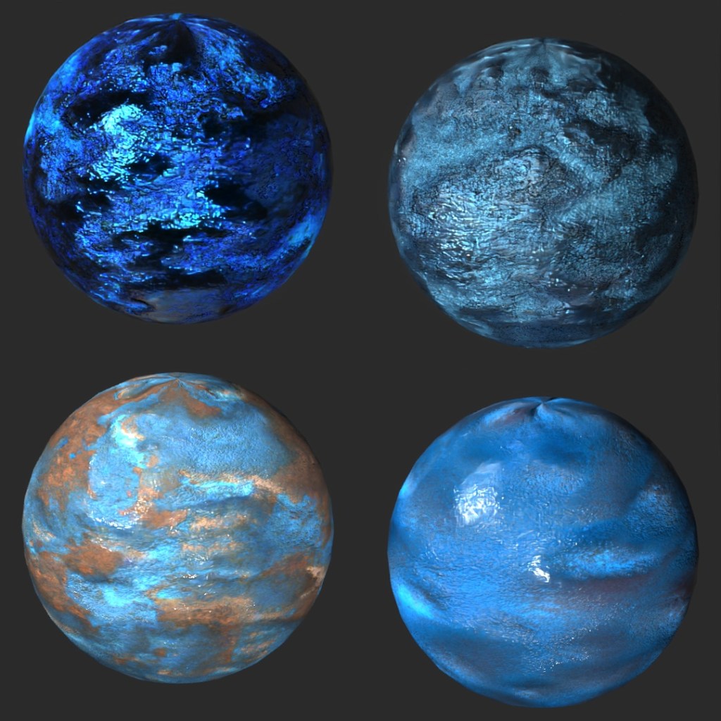 I picked my favorite four textures and brought them into Photoshop to make them into truly “seamless” textures. I also used Photoshop to make the bump and diffuse maps to go along with the images.